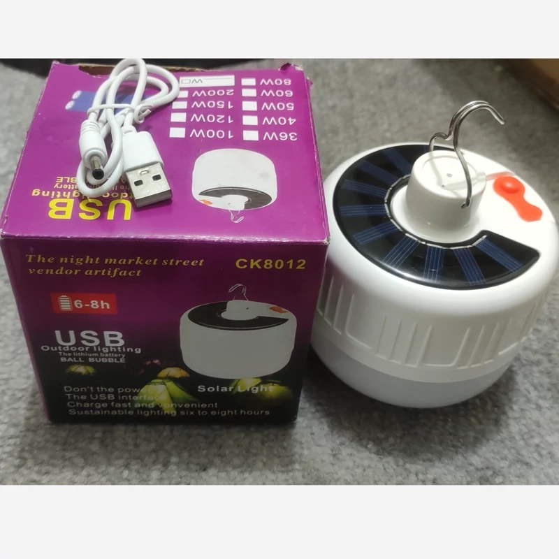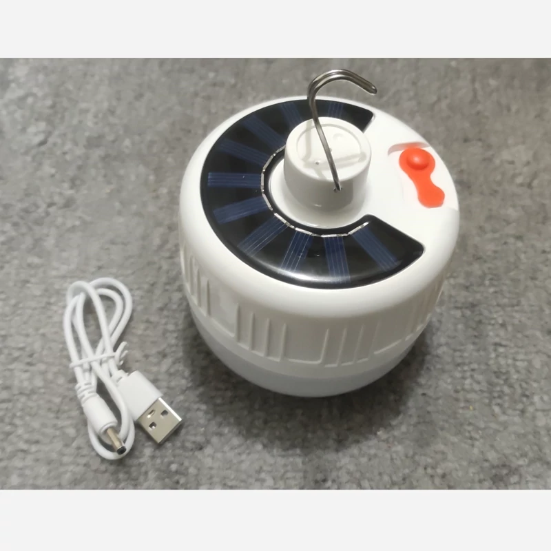 لامپ شارژی قلابدار کمپینگ مدل رنگ نور: سفید قابلیت شارژ با درگاه یو اس بی و پاور بانک و انرژی خورشیدی دارای سه حالت نور دهی پر نور، متوسط، کم نور کابل شارژ