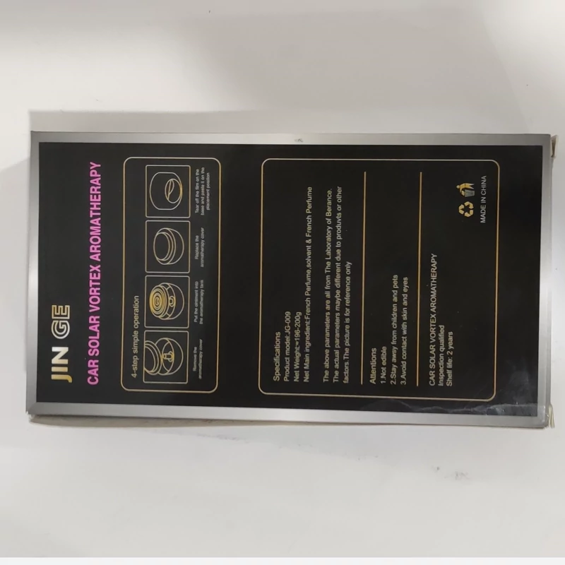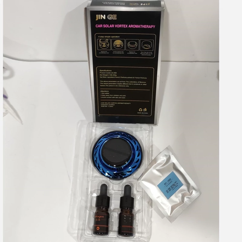 دو عدد رایحه خوشبو با اسانس نسیم دریا همراه این محصول وجود دارد که با چکاندن چند قطره درون پد خوشبو کننده و قرار دادن آن در معرض تابش نور آفتاب یا نور چراغ آفتابی محیط خودرو و اطراف را خوشبو می کند.