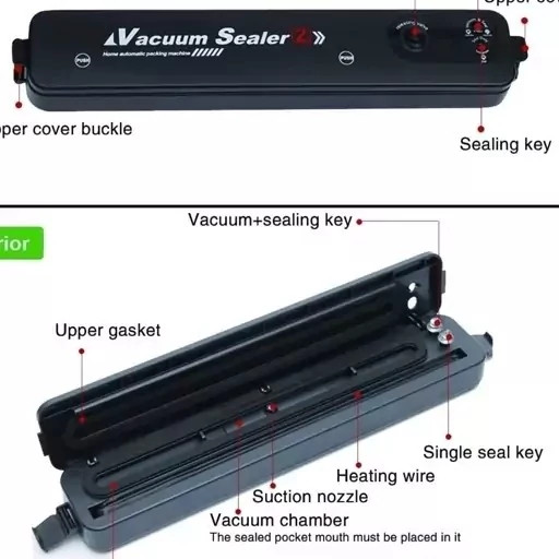 این دستگاه دو کاره است : 1 وکیوم کردن خلا 2 پرس کردن دارای کیسه مخصوص وکیوم دستگاه پلمپ کیسه فریزر وکیومی vacuum sealer ابزار مخصوص وکیوم کردن انواع کیسه های پلاستیک وکیومی و از نایلون فریزر برای پرس کردن کارکرد بسیار ساده و آسان دستگاه وکیوم و دوخت پلاستیک خانگی وکیوم دستگاه وکیوم و پرس با کارکرد بسیار آسان و سریع مناسب بسته بندی انواع مواد غذایی و سبزیجات و … مناسب پلمپ و وکیوم انواع کیسه های پلاستیکی وکیوم قابلیت پلمپ نایلون فریزر تنها در 3 ثانیه طراحی ایمن و بدون خطر