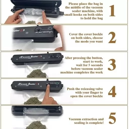 این دستگاه دو کاره است : 1 وکیوم کردن خلا 2 پرس کردن دارای کیسه مخصوص وکیوم دستگاه پلمپ کیسه فریزر وکیومی vacuum sealer ابزار مخصوص وکیوم کردن انواع کیسه های پلاستیک وکیومی و از نایلون فریزر برای پرس کردن کارکرد بسیار ساده و آسان دستگاه وکیوم و دوخت پلاستیک خانگی وکیوم دستگاه وکیوم و پرس با کارکرد بسیار آسان و سریع مناسب بسته بندی انواع مواد غذایی و سبزیجات و … مناسب پلمپ و وکیوم انواع کیسه های پلاستیکی وکیوم قابلیت پلمپ نایلون فریزر تنها در 3 ثانیه طراحی ایمن و بدون خطر