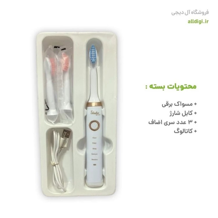 سرعت موتور : 8000 مدت زمان شارژ کامل : 20ساعت اقلام همراه : عددی سری + کابل سارژ + بروشور + درپوش محافظ کاربرد سری : استاندارد -سری سفید کننده -برای دندان های حساس -برای تمیز کنندگی قوی