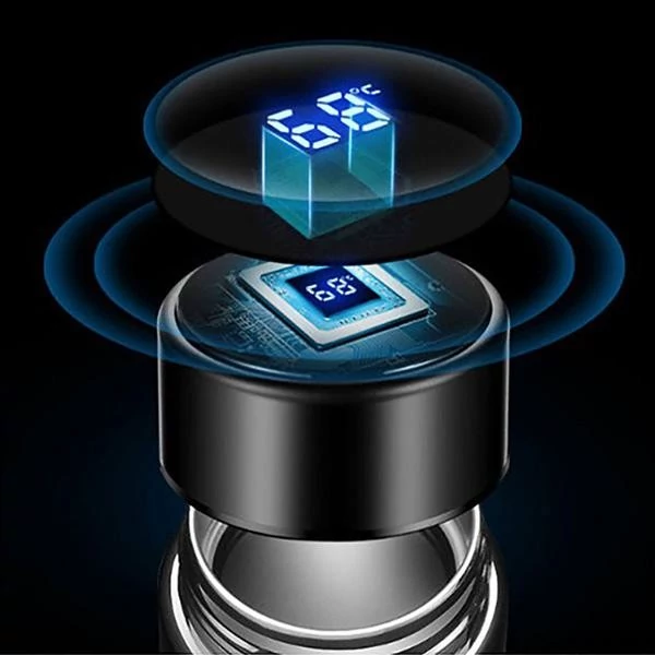 این فلاسک هوشمند با استفاده از سنسور سنجش دمایی که دارد به راحتی با یک ضربه روی درب آن دمای مایع درون خود را به شما نشان می دهد.