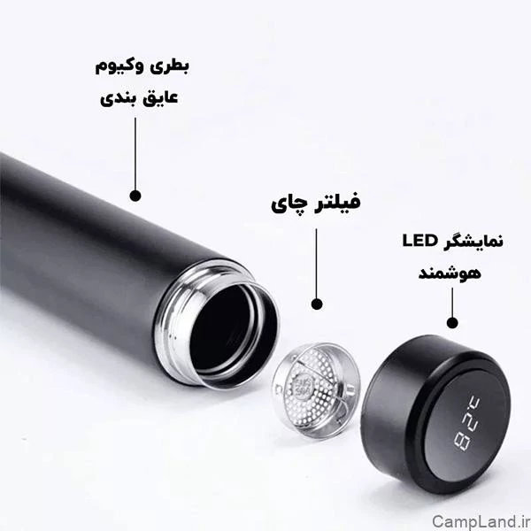 باتری این فلاسک یک باتری ساعتی است که براحتی می توانید بعد از اتمام آن را عوض کنید.