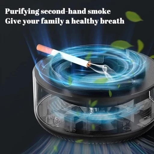زیر سیگاری الکتریکی مکنده دود دارای فن مکنده دود سیگار ،محل قراردادن سیگار روشن و همچنین محل ریختن خاکستر و ته سیگار است و با دارا بودن 3 فیلتر مختلف غبار گیر و کربن اکتیو ابری و کربن اکتیو فشرده، بوی سیگار و دیگر بوهای محل را میگیرد که نقش بوگیر و تصفیه هوا را دارد.همچنین این فیلتر ها باکتری و گرد و غبار را نیز فیلتر میکنند.
