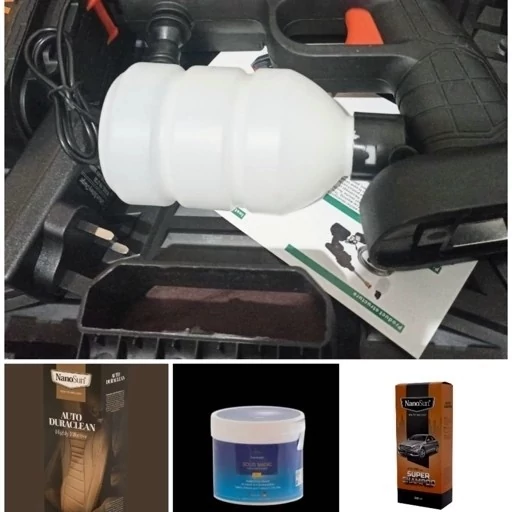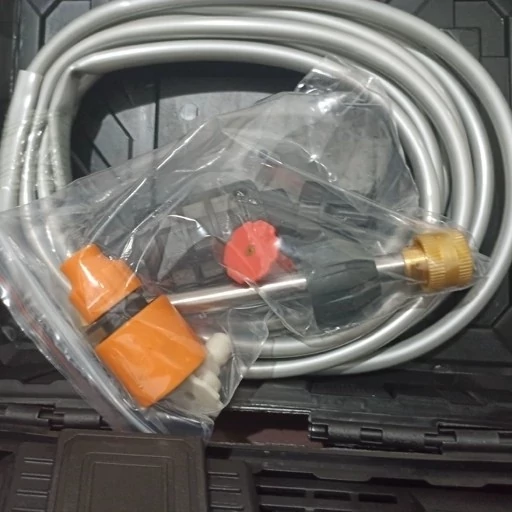 کارواش شارژی دارای مخزن مواد شوینده باطری 48ولتی شارژر شلنگ 5متری اتصالات و صافی قابل استفاده بعنوان سمپاش و مصرف خانگی و صنعتی