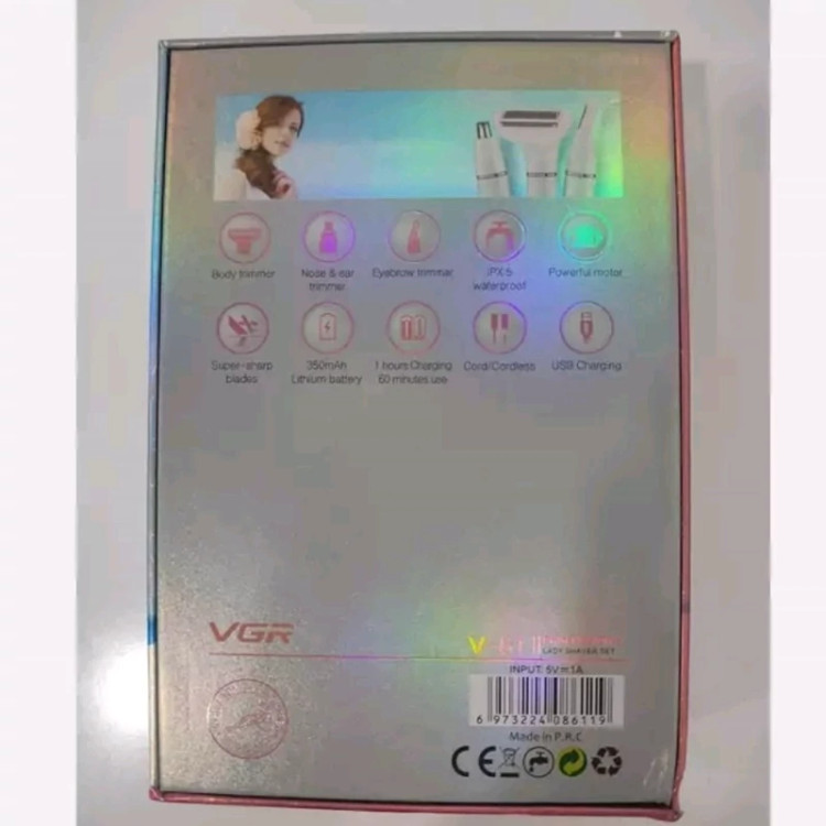 شیور ضد آب VGR V-611 مرجع: VGR V-611 شیور 3 کاره بانوان وی جی آر مدل VGR V-611 دارای 3 سری: موزن گوش و بینی، اصلاح بدن و شیور قابلیت ضد آب: دارد جنس تیغهها: استیل ضد زنگ جنس بدنه: ABS منبع انرژی: باتری 350 میلی آمپر شارژ کامل در 60 دقیقه امکان استفاده مداوم تا 1 ساعت دارای نشانگر میزان شارژ موتور قدرتمند و کم صدا