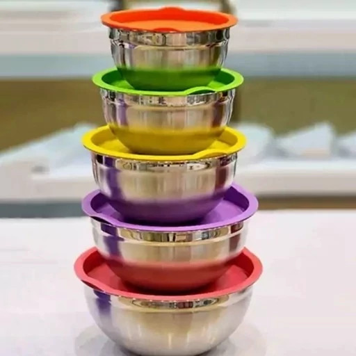 سرویس کاسه لگن 5 تکه استیل درب رنگی درب دار