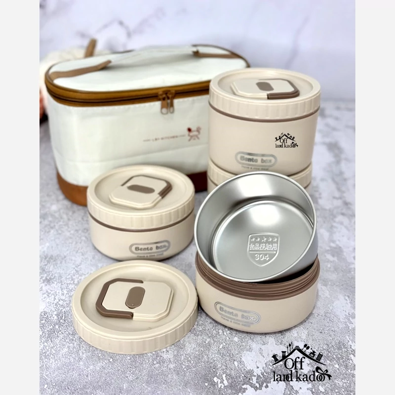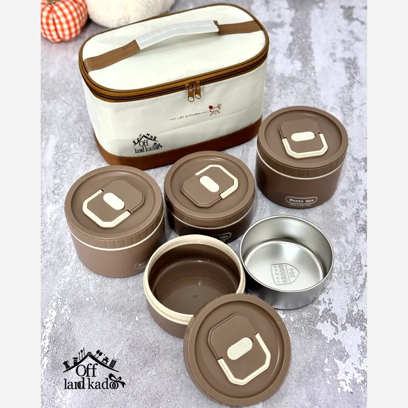ظرف غذای( لانچ باکس) داخل استیل، 4 تکه، بدون نشتی، به همراه کیف
