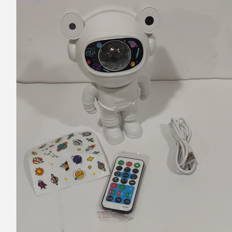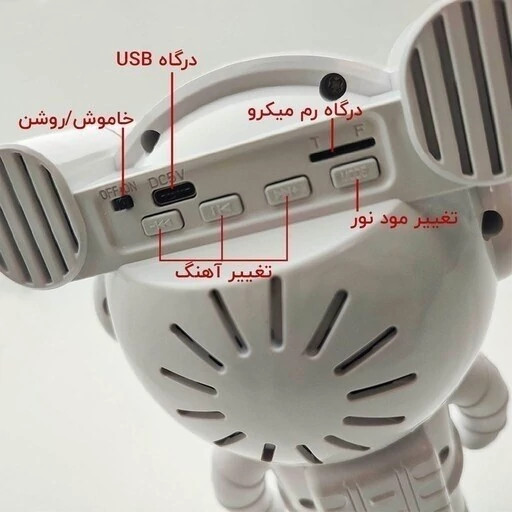 دارای کابل همراه با کنترل از راه دور قابلیت تنظیم سر فضا نورد دارای 8 حالت تغییر رنگ کهکشان چراغ خواب فضا نورد با نورهای زیبا ایجاد فضایی رمانتیک و دوست داشتنی استفاده با برق مستقیم بدون باتری