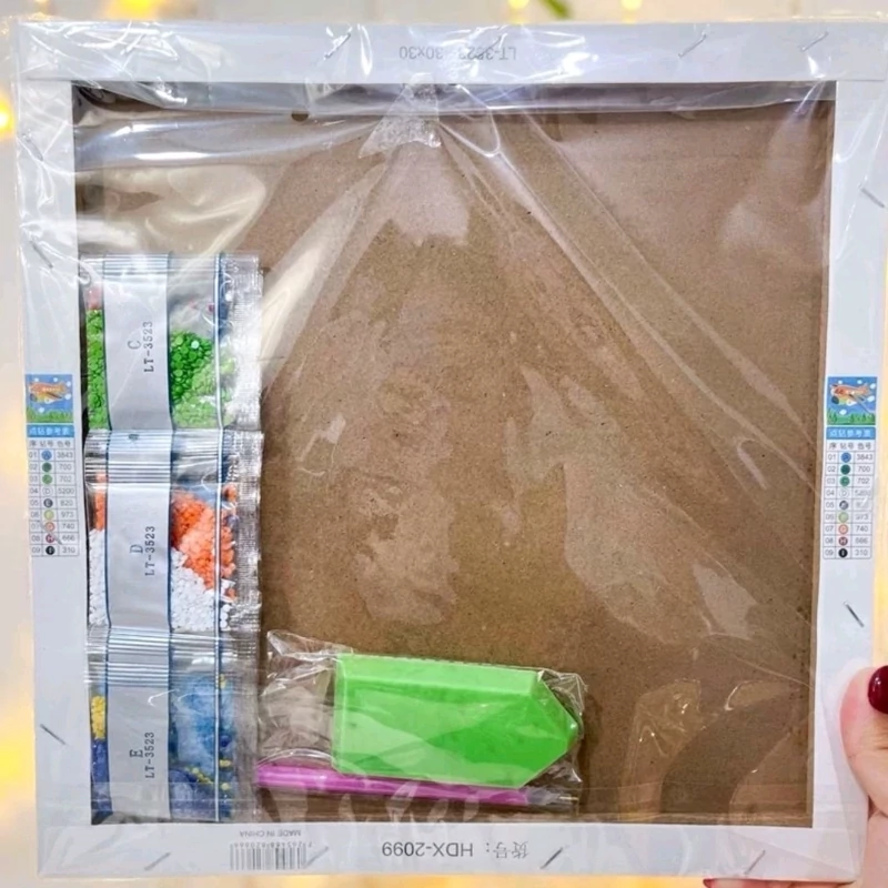 نقاشی الماسی بومی سایز متوسط 20*20 همراه با نگین چسب و ظرف نگین و کاردک